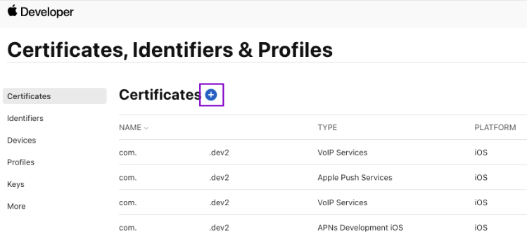 - Sign in to the Apple Developer Member Center → Certificates, Identifiers & Profiles.