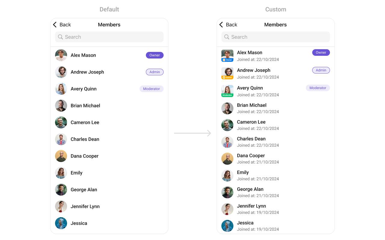 - You can customize the subtitle view for each GroupMembers item to meet your requirements
